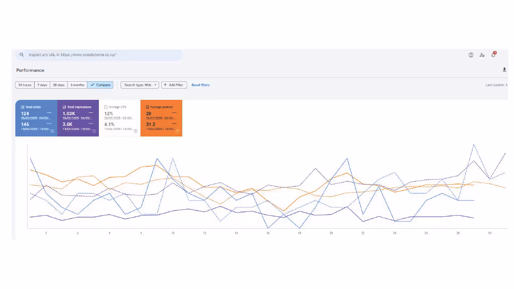 Close to Home aimed to significantly enhance its online presence and organic search rankings to attract more potential guests, particularly for key non-branded search terms. The initial 90-day goals included getting “holiday houses kaikoura” (a keyword appearing in the reports) into the top 20 positions, increasing traffic by 10%, and increasing visibility by 20%.